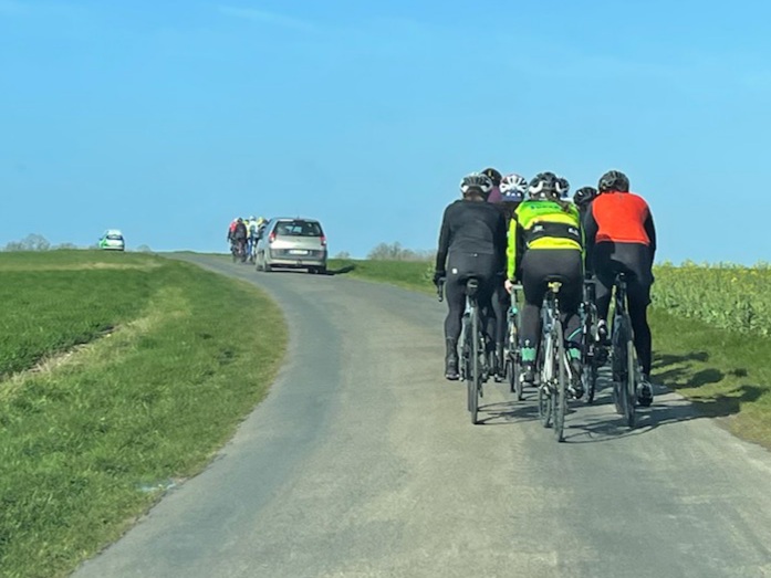 - l'après-midi : sortie de 60 km avec 3 sprints. Deux équipes ont été constituées pour essayer de mettre en place un train.