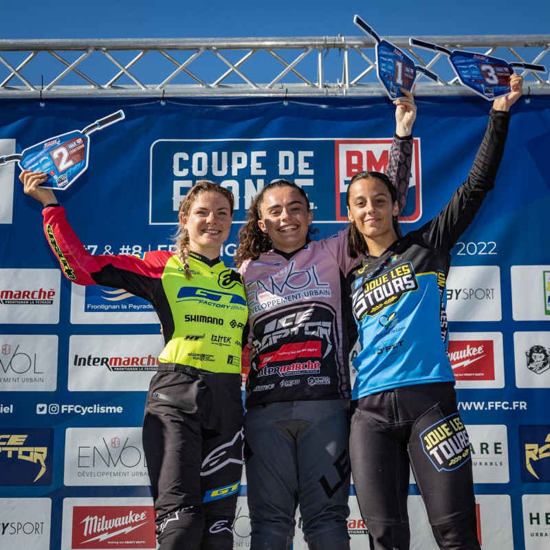 Chez les Élites Femmes, Emma Granger (BMX Club Joué-lès-Tours) a pris une très belle troisième place... Bravo, Emma !